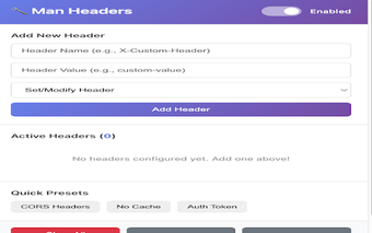 Man Headers - HTTP Header Modifier ist ein kostenloses Add-on für den Chrome-Browser, das es Benutzern ermöglicht, HTTP-Anforderungsheader zu manipulieren, hinzuzufügen oder zu aktualisieren. Diese Funktionalität ist besonders nützlich für Entwickler und Tester, die das Verhalten von Webanwendungen analysieren oder anpassen möchten. Mit einer benutzerfreundlichen Oberfläche können Anwender gezielt Header für alle Browseranfragen ändern, was die Flexibilität bei der Webentwicklung erhöht.